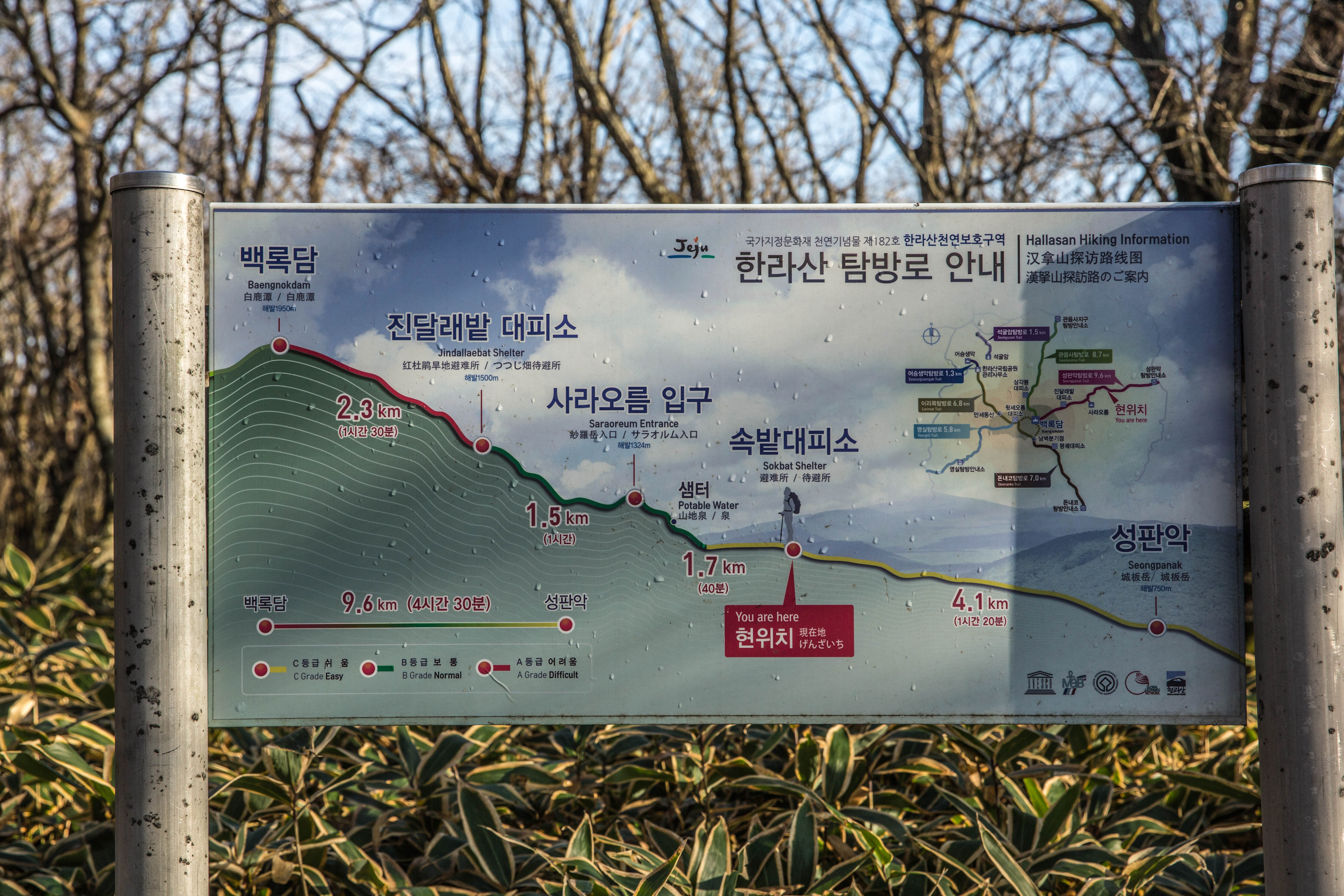 Hallasan mountain have different trail and two of them are going to the summit. The Seongpanak trail that we went and the Gwaneumsa Trail that we were planning to return down from. Due to blockage of the Gwaneumsa Trail we had to return down the same trail as we came from. The Gwaneumsa trail supposed to be more strenuous with fantastic sceneries.