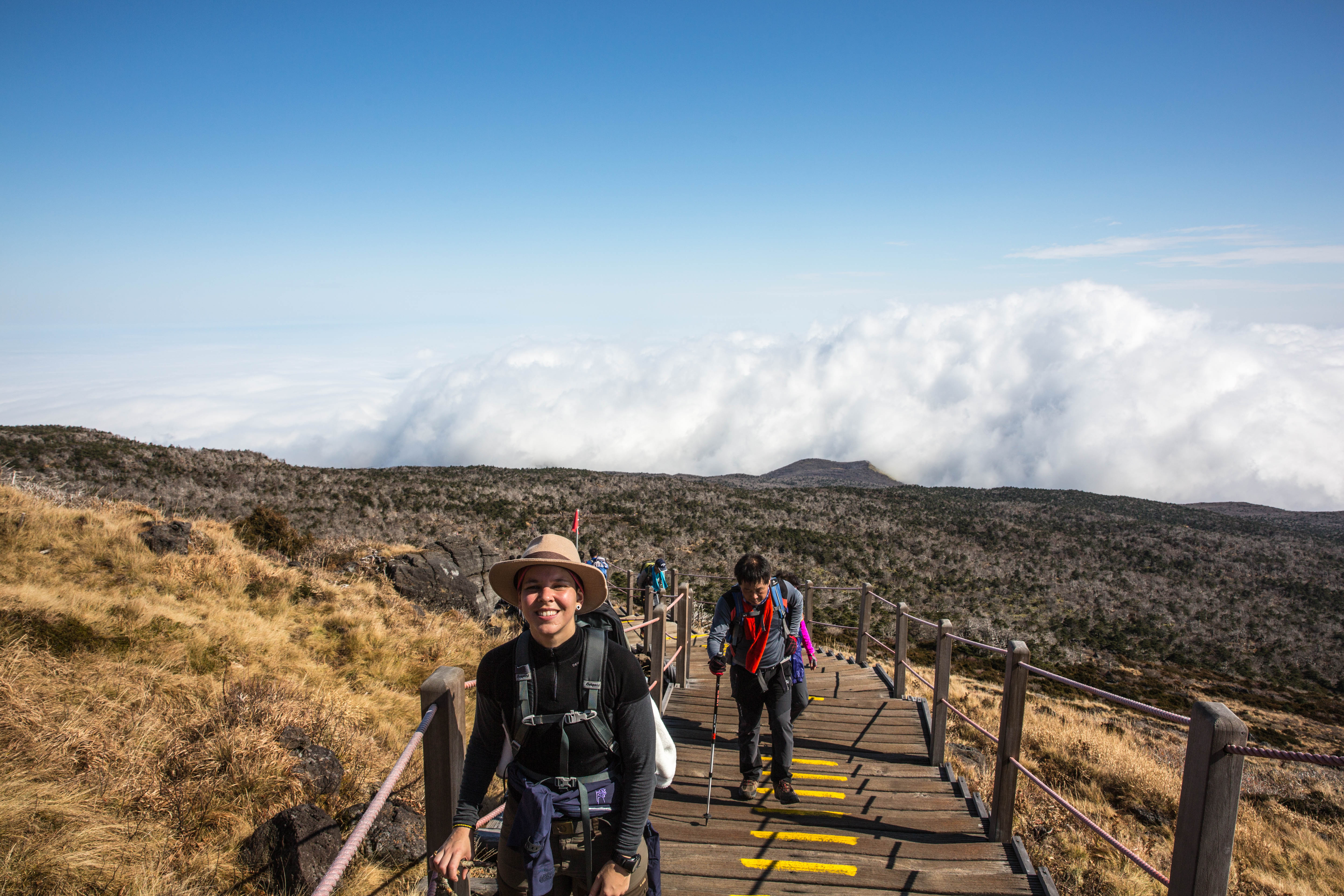 About 4.5 hours later, with backpacks much lighter due to a few stops along the way to fuel our body to get some energy, we were standing at the top of Mt Hallasan, South Korea’s tallest mountain with an altitude of 1950m above sea level.
