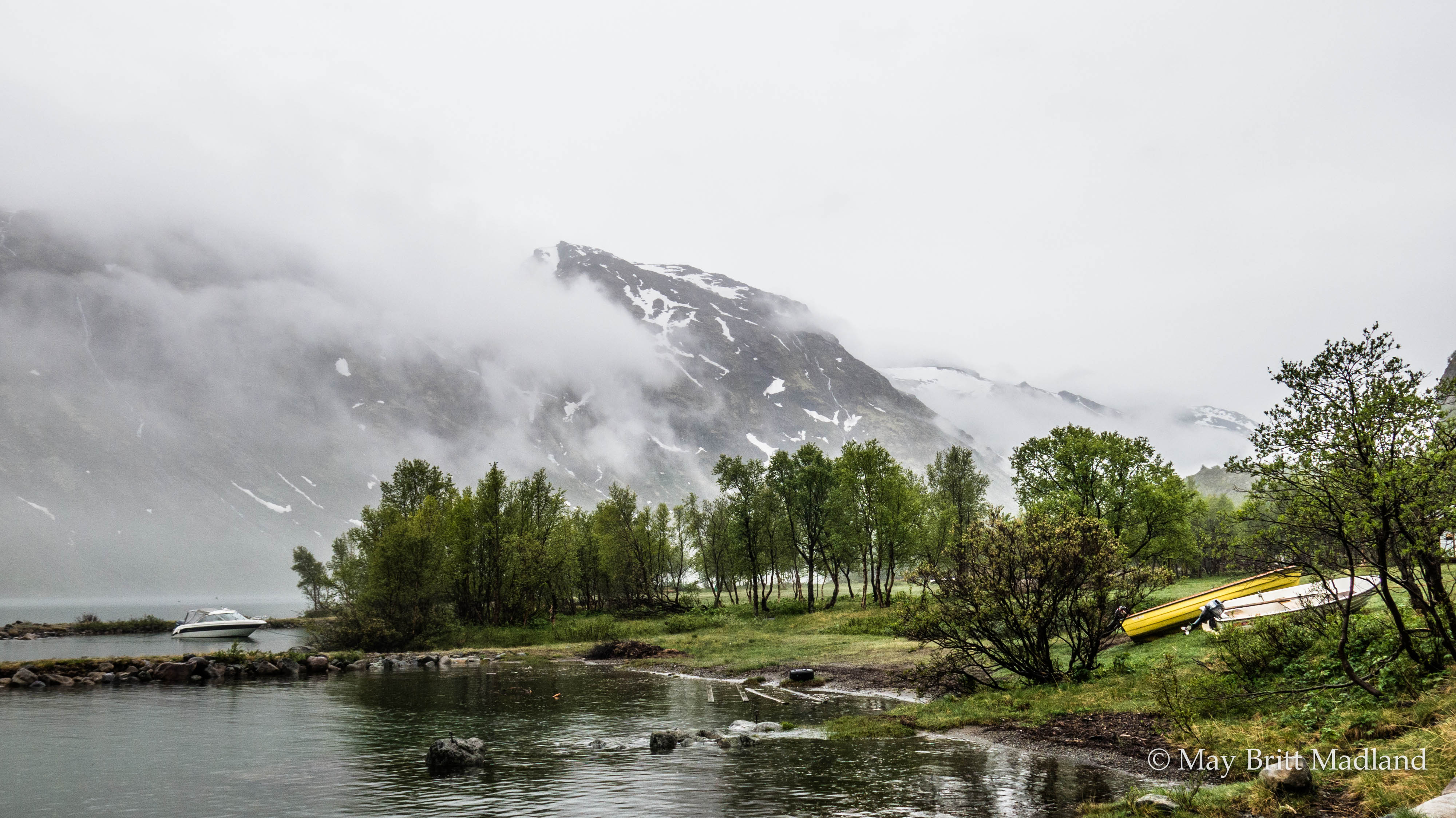 Continuing along the coast with the view of Isfjord Radio in front of us.