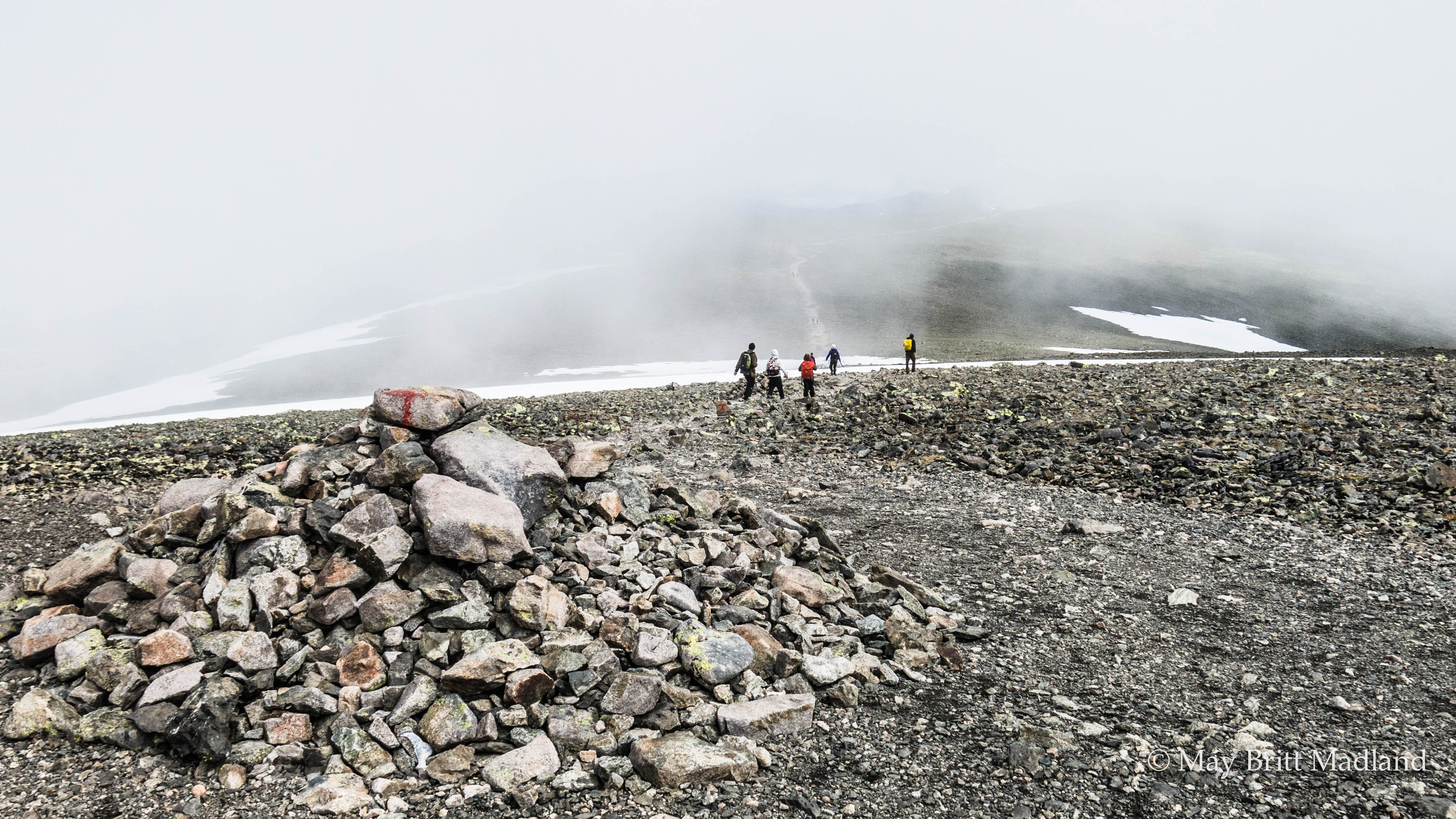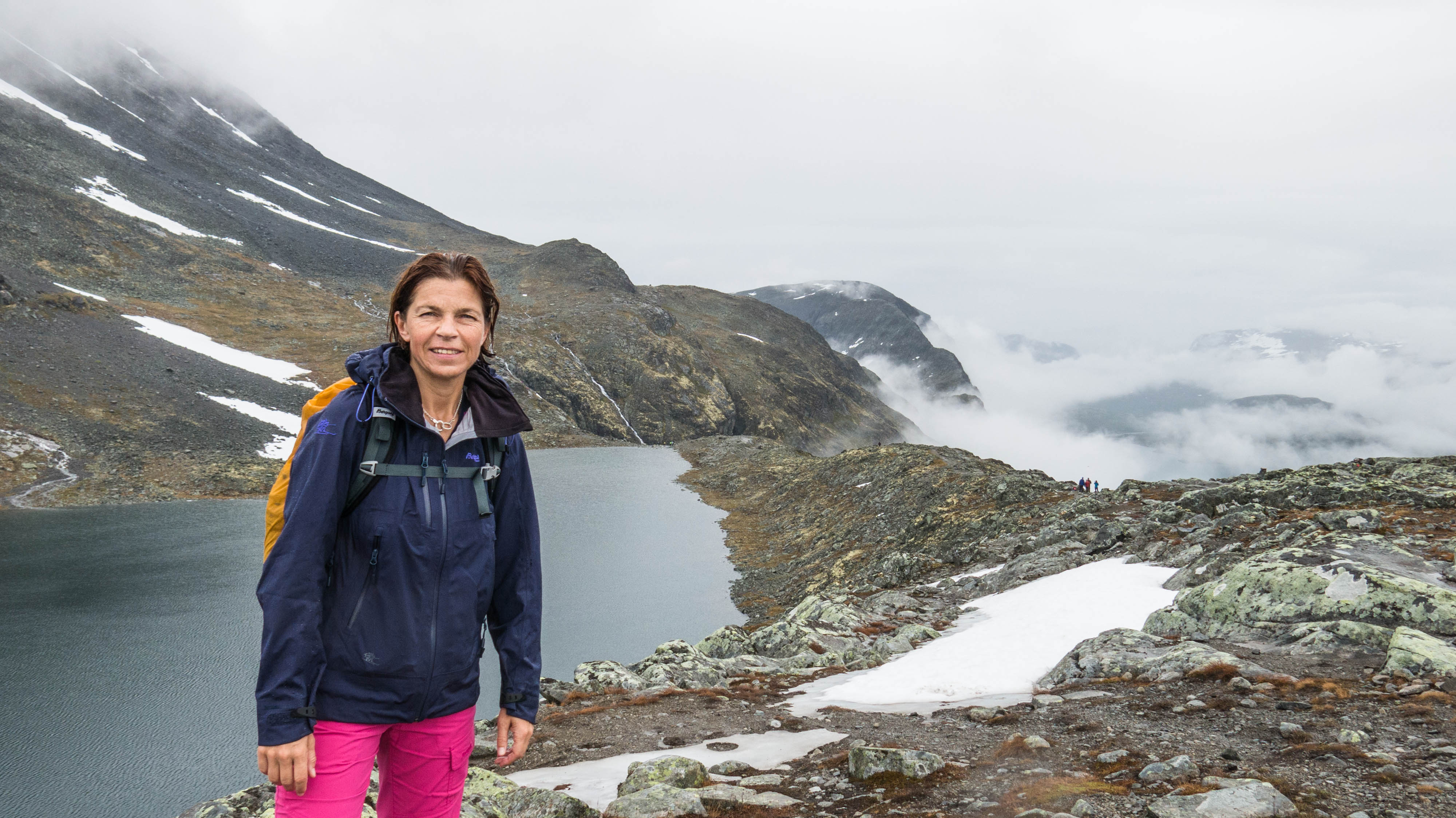 At day 4, Arriving at Stormyra the wind stopped. It had been a hard day as most of the day had been skied with a slight slope down on one side as we where skiing along the mountain side. It was difficult to control the sledge not tipping over as it was sliding on the side of me, so I had to try to get a pace that would allow the sledge to follow but not slide down and stop as then it would tip. As we where turning around the mountain we where facing a quite steep uphill followed by a steep downhill before entering down at Stormyra. One of the guide fell and cut his hand on a stone so urgent attention was put to that to see that he was fine to continue. Then it was the challenge to ski down with the sledge as it was sloping both down and to the side, so I chose as some of the others to take the ski off and carry them down. Better be on the safe side to avoid ending up in the fjord and the ice cold water.